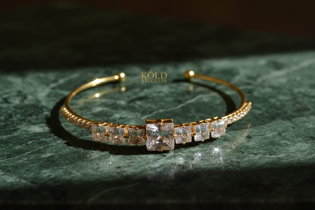 - Özel Tasarım Kare Zirkon Taşlı Modern Kadın BİLEKLİK