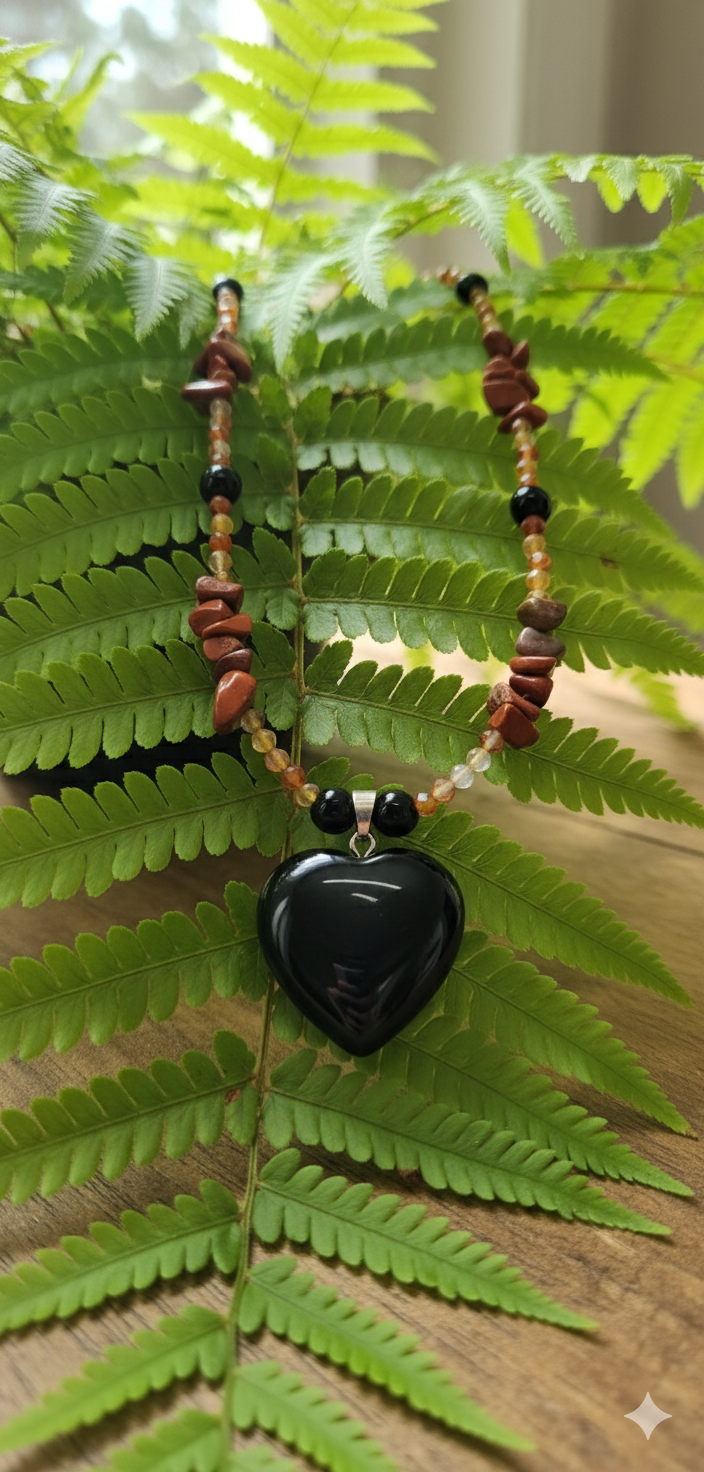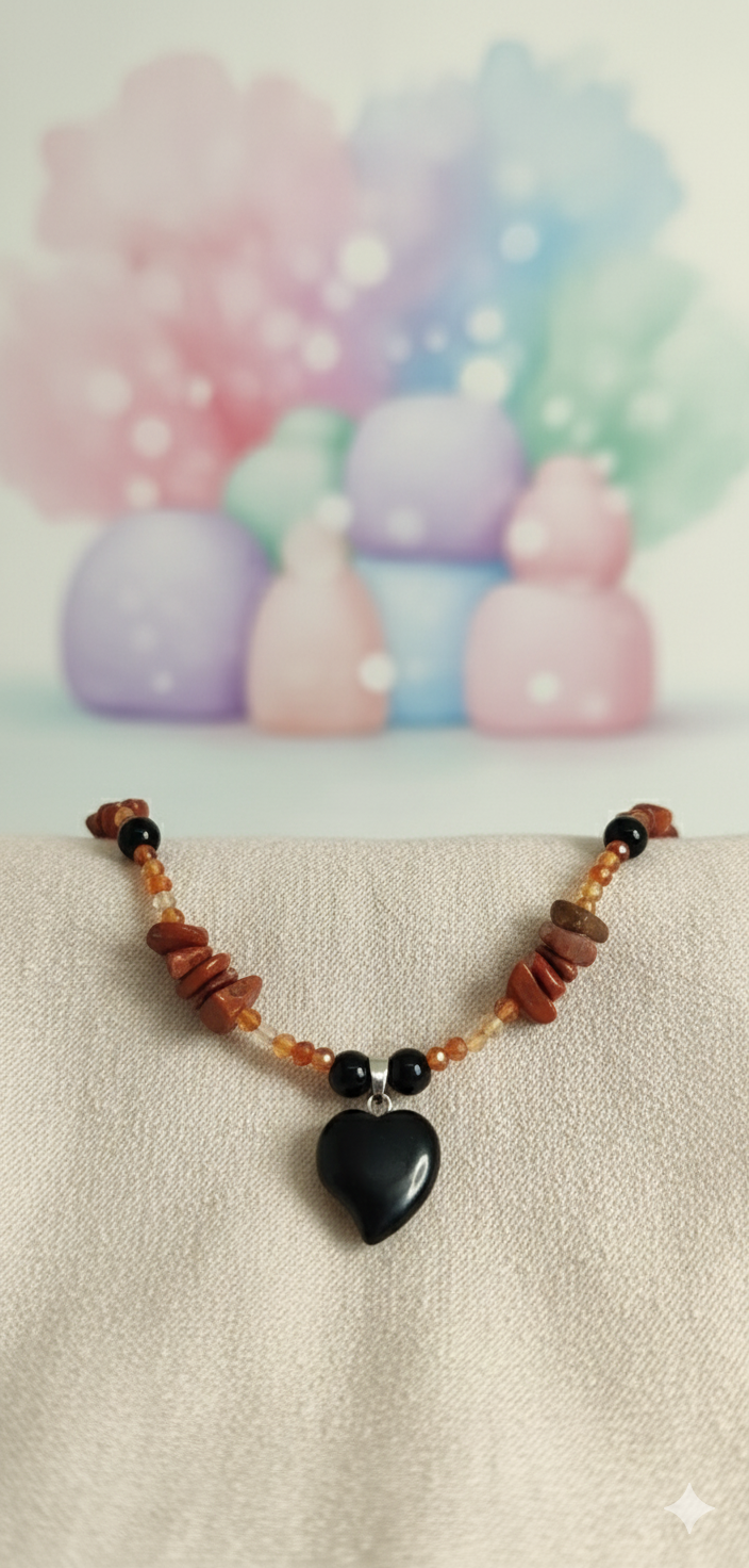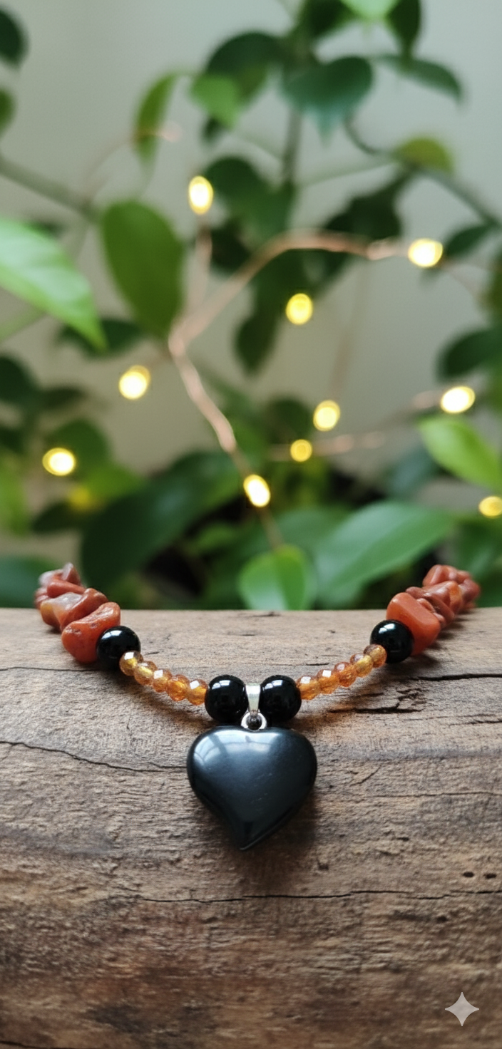 This handmade necklace is crafted to bring balance, passion, and protection