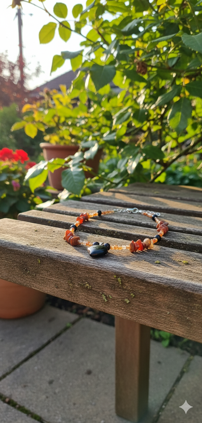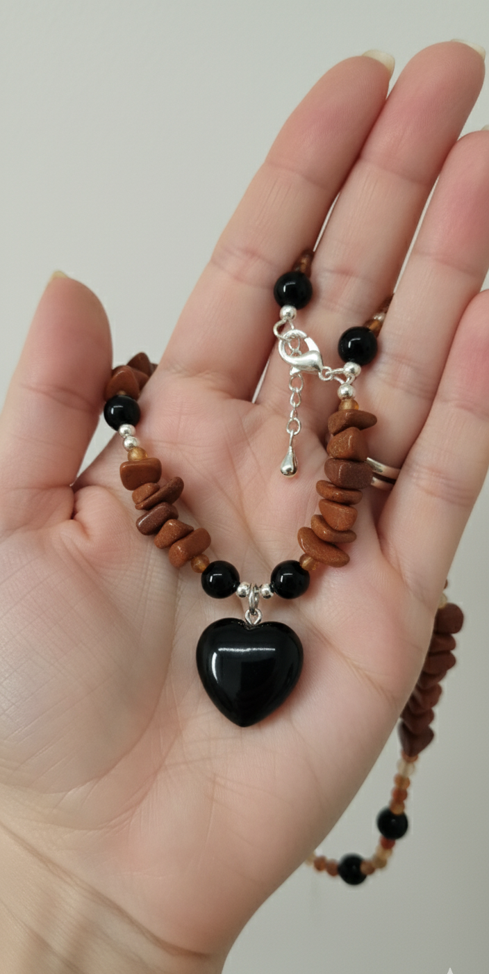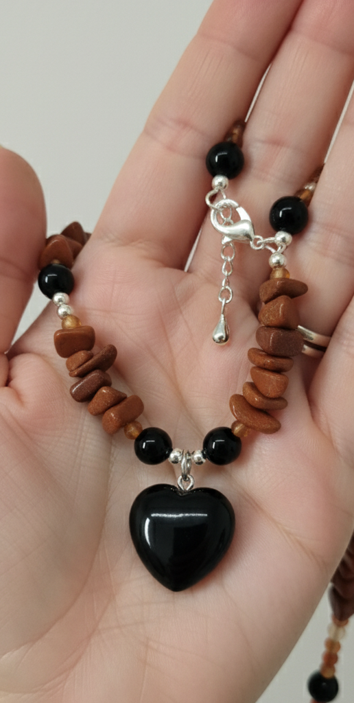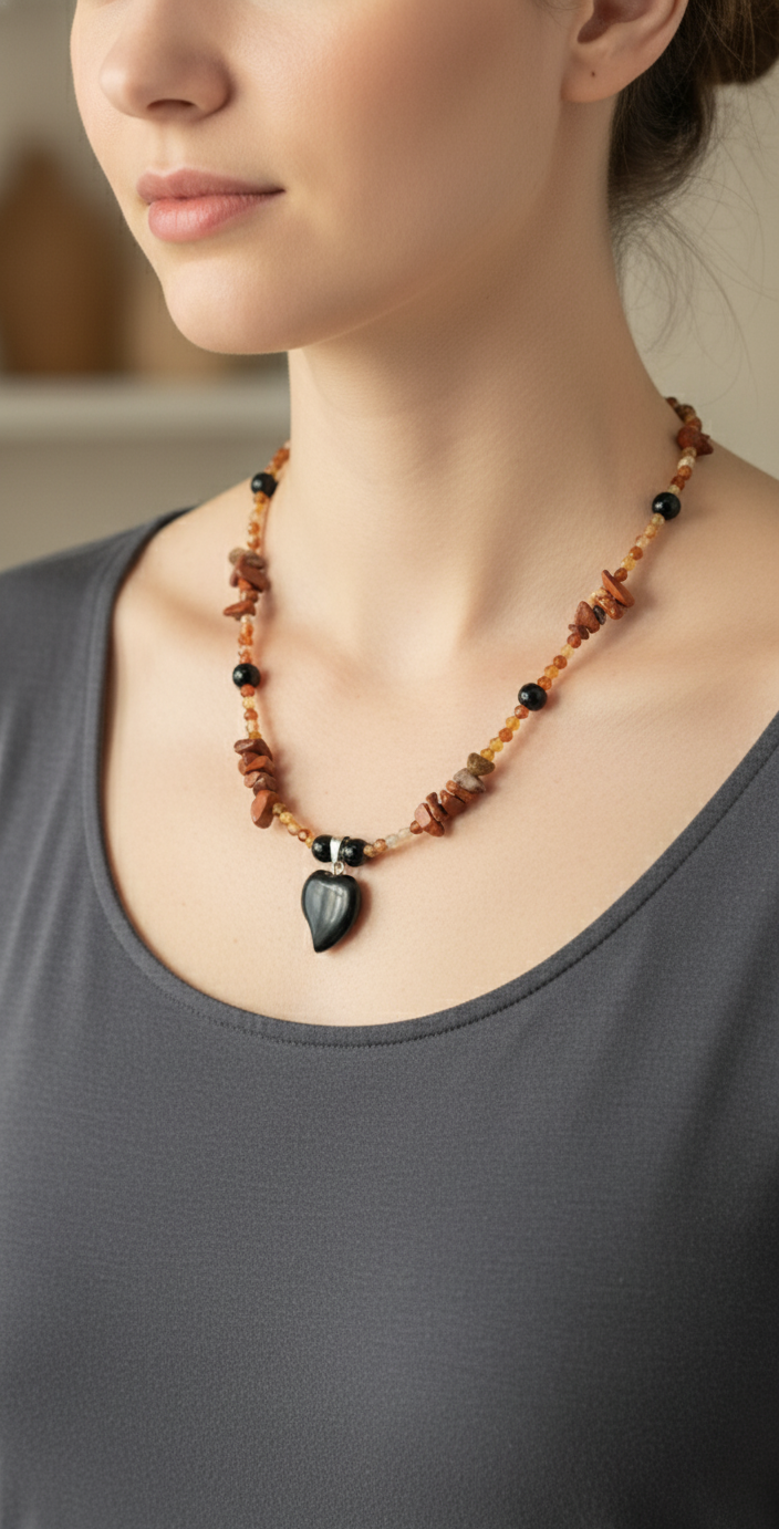 This handmade necklace is crafted to bring balance, passion, and protection