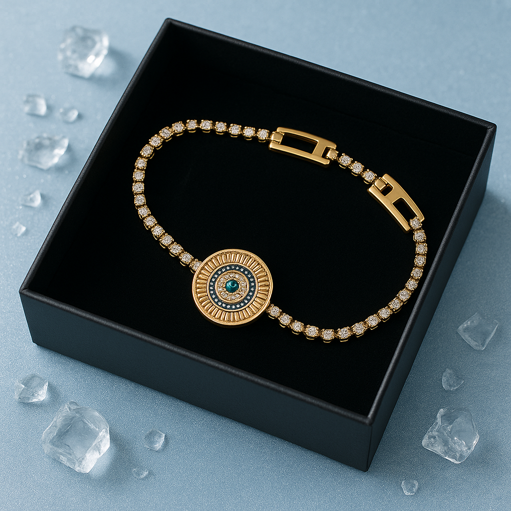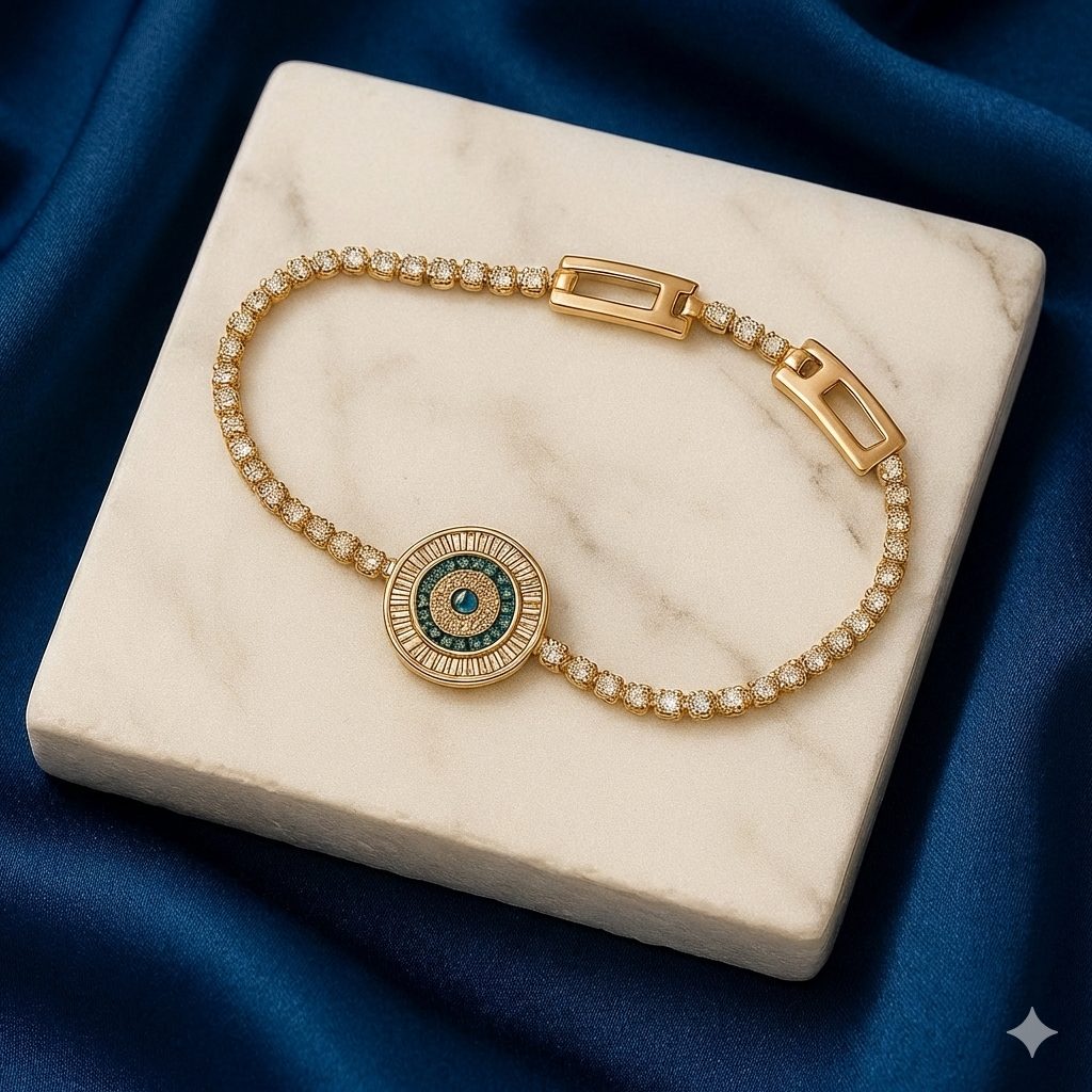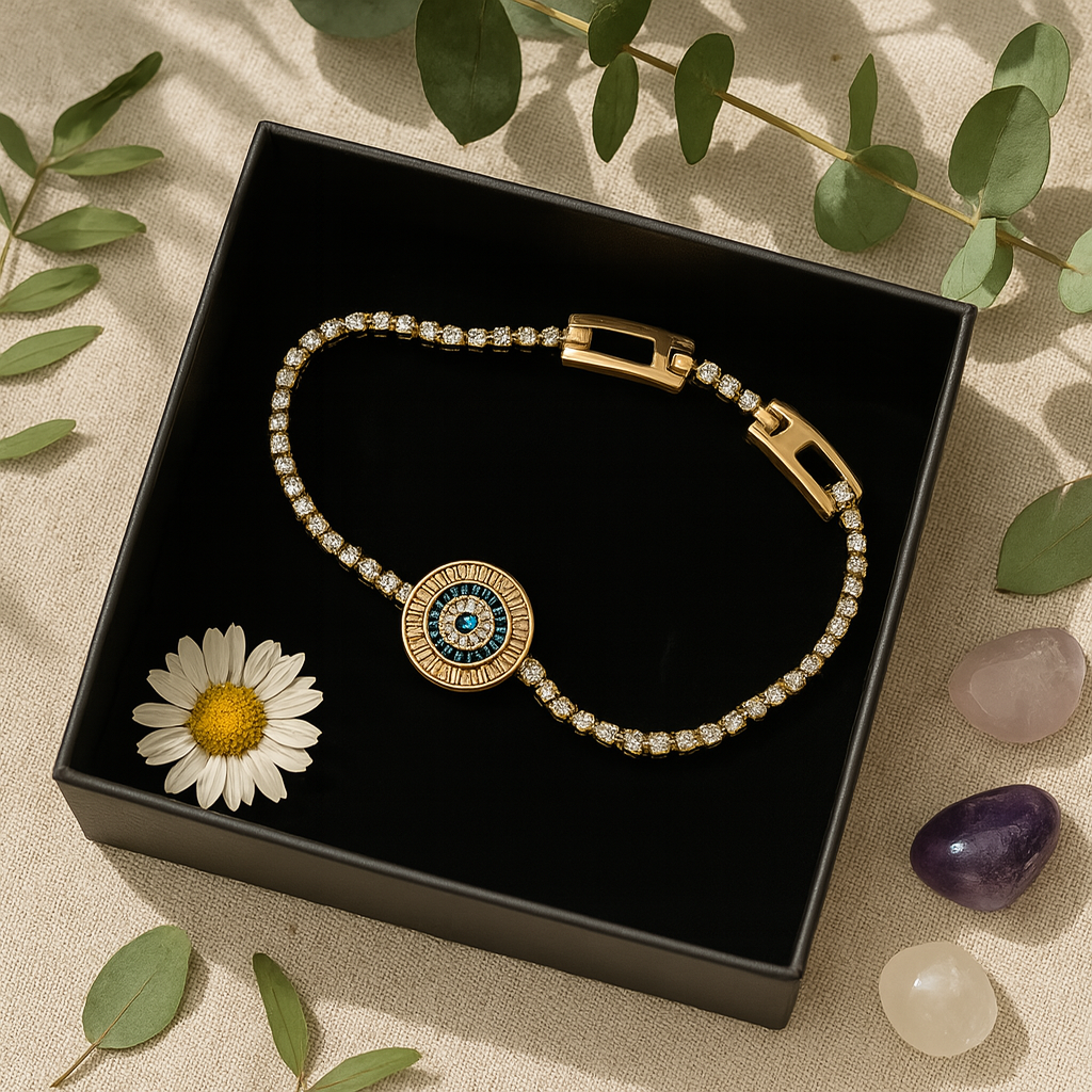 Ortasındaki mavi taşlı göz motifi, sizi negatif enerjilerden korurken,