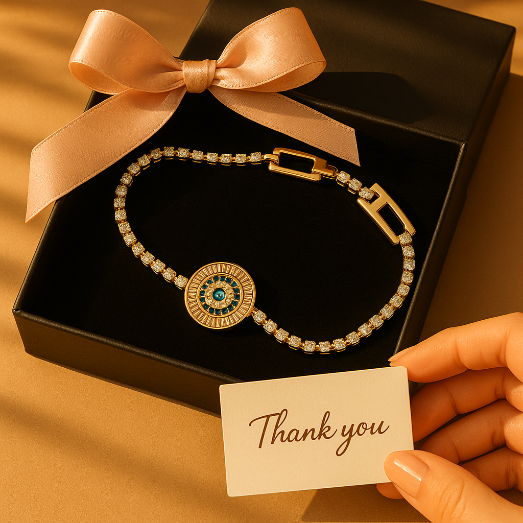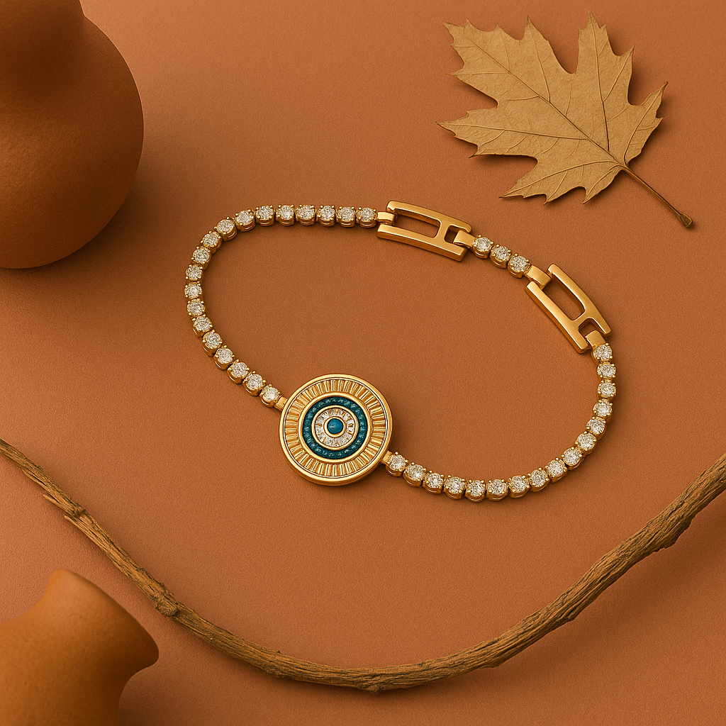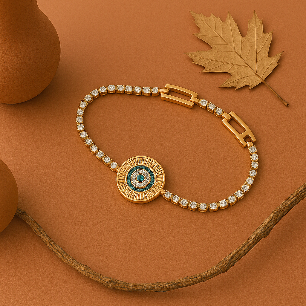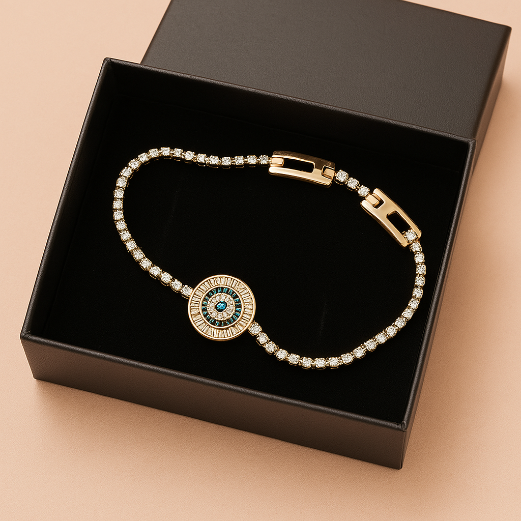 Ortasındaki mavi taşlı göz motifi, sizi negatif enerjilerden korurken,
