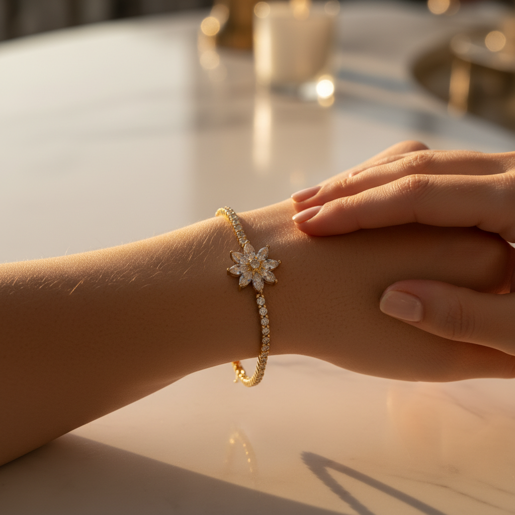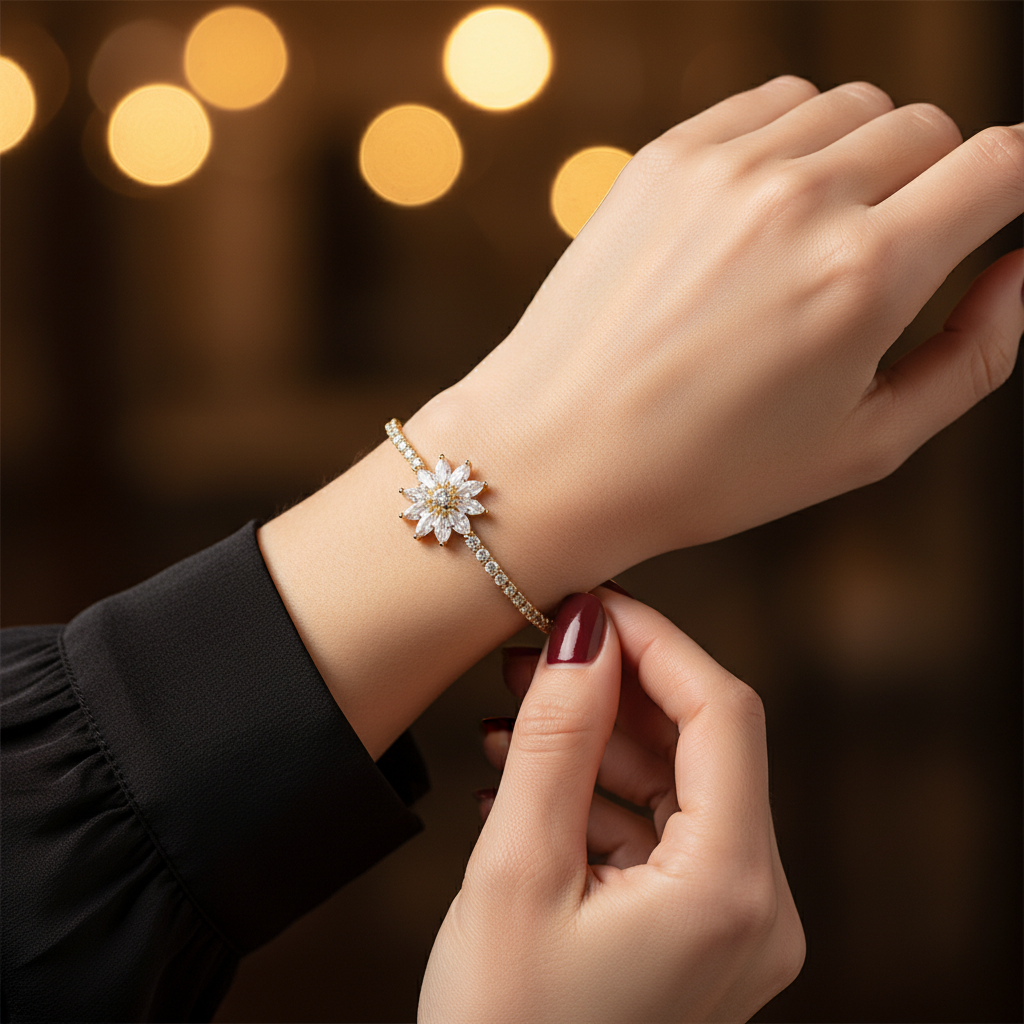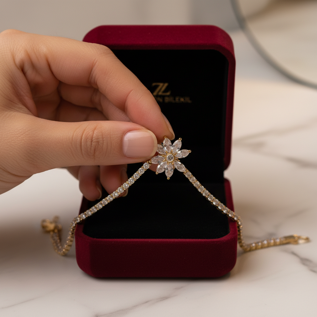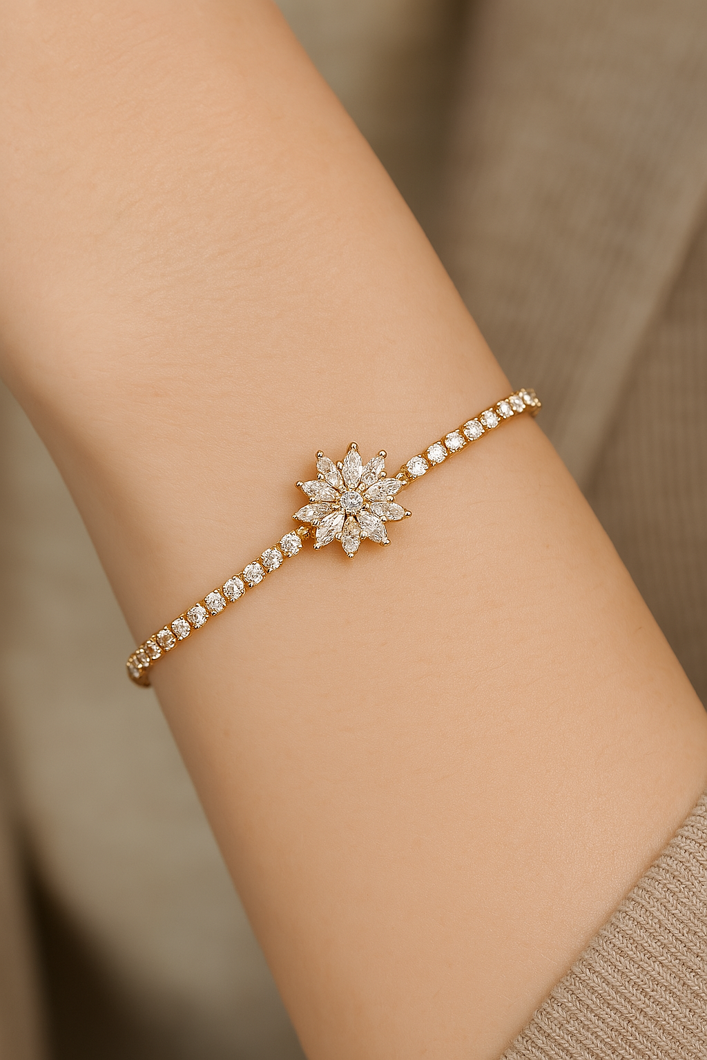 20. zamansız tasarım timeless designBu zarif gold renk zirkon taşlı kadın bileklik, modern tasarımı ve ışıldayan detaylarıyla stilinize zarafet katıyor. Parlak zirkon taşları sayesinde bileğinizde etkileyici bir görünüm sunarken, ayarlanabilir yapısı sayesinde tüm bilek ölçülerine uyum sağlar. Günlük kombinlerden özel davetlere kadar her anınıza uyumlu, şık bir takıdır. Kendiniz için güzel bir aksesuar veya sevdikleriniz için anlamlı bir hediye seçeneğidir.