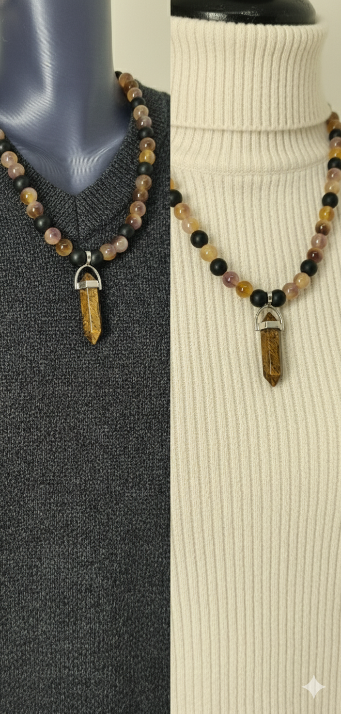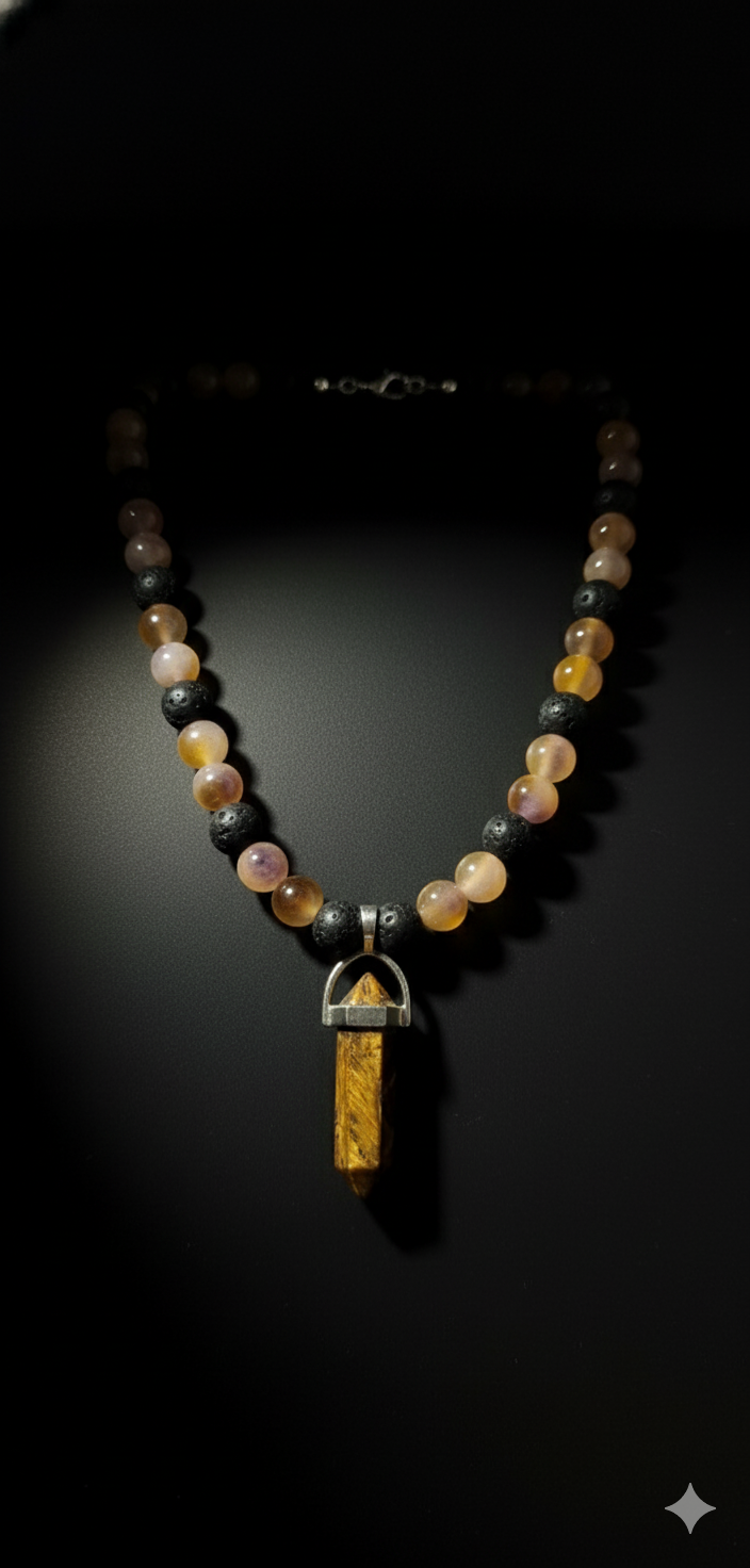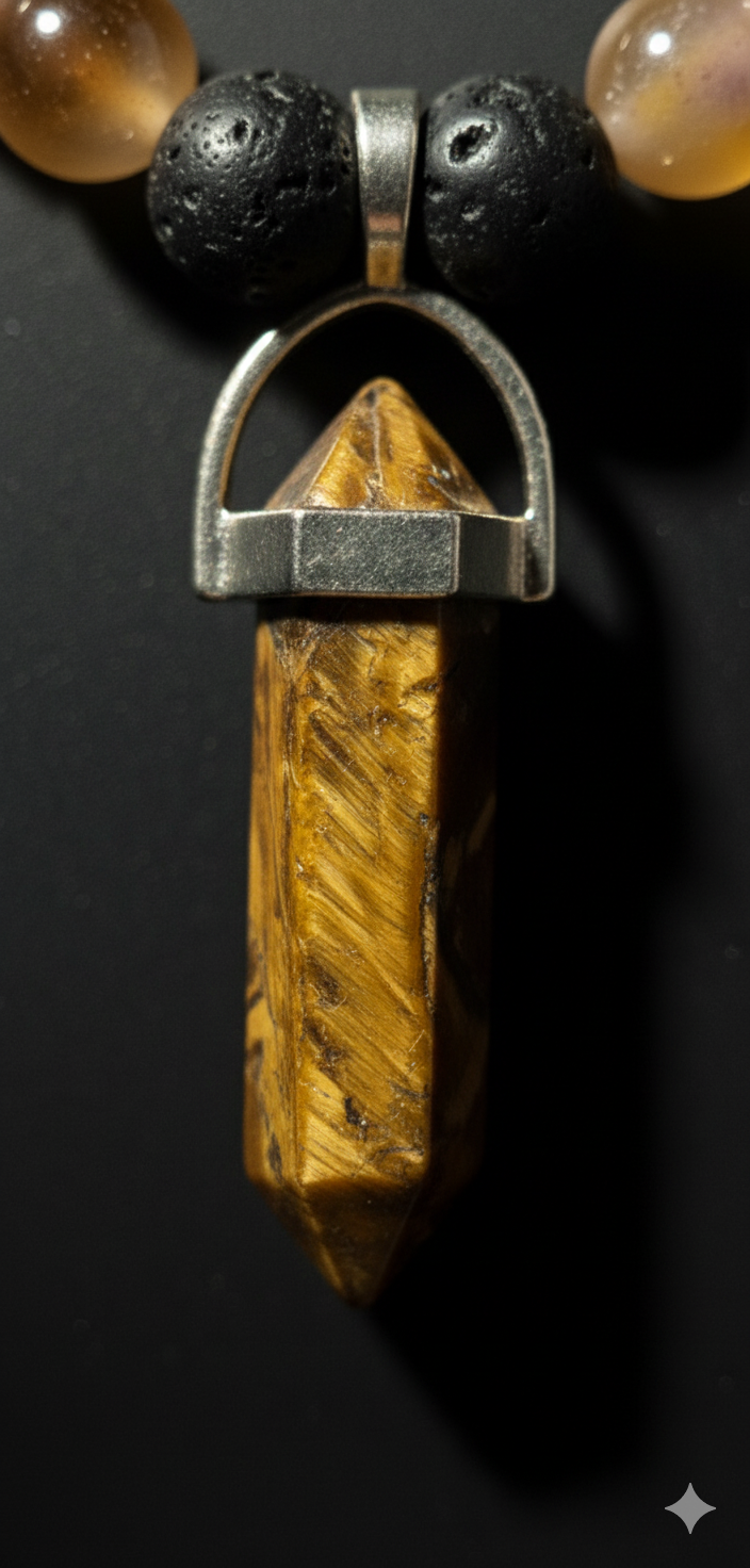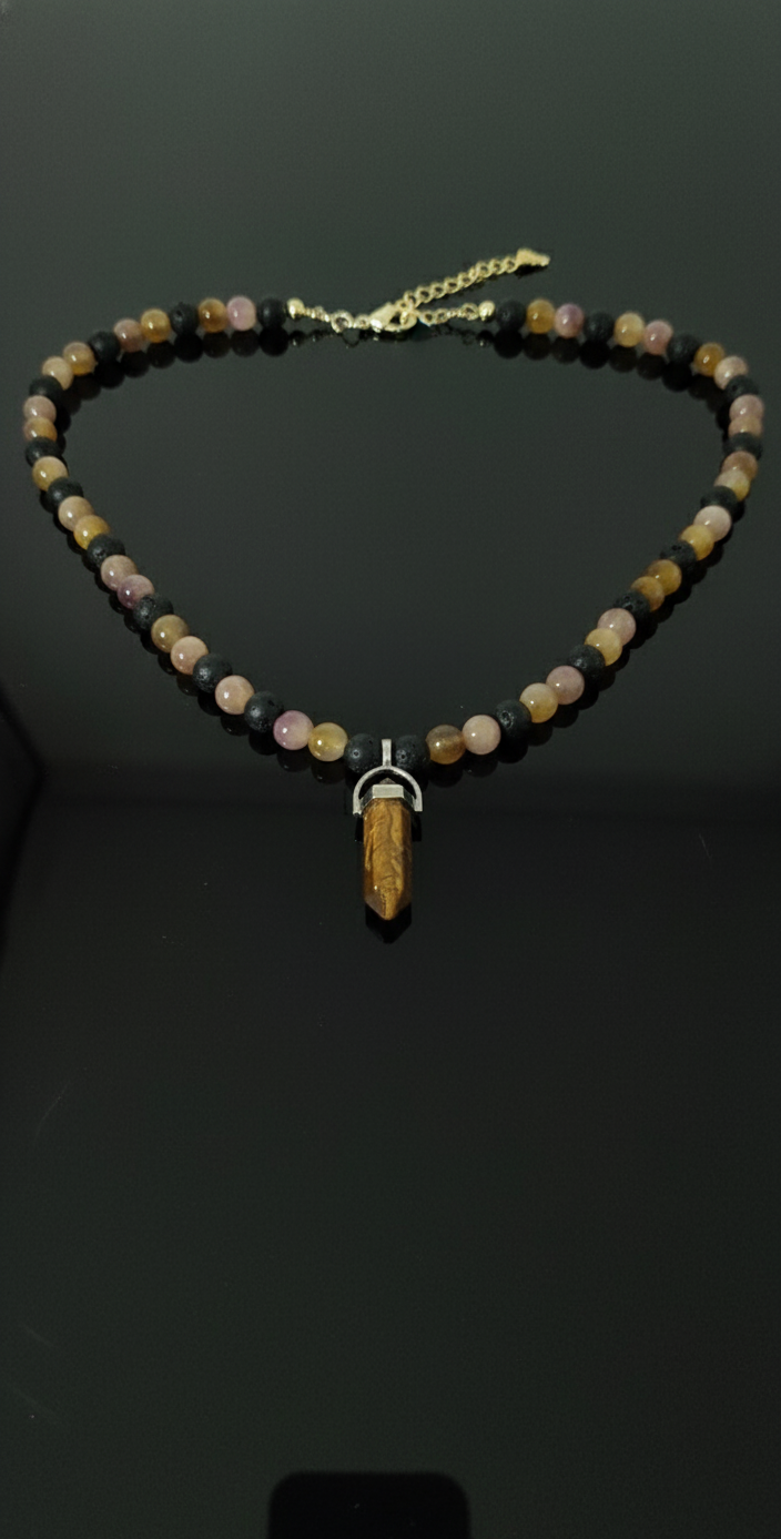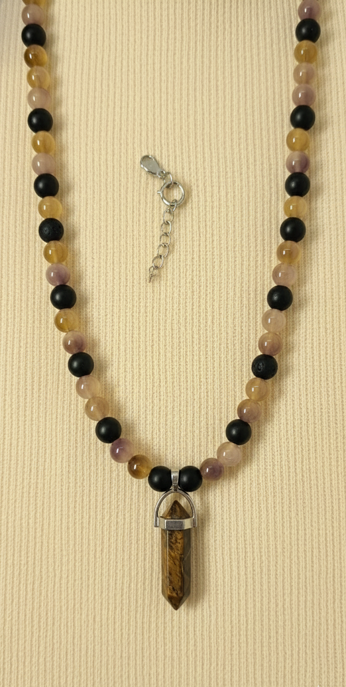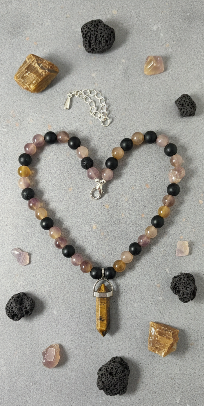 Tiger Eye & Agate: Courage and Protection Stone. Handmade Energy Necklace.