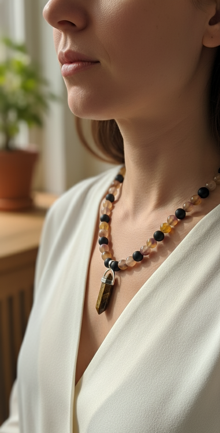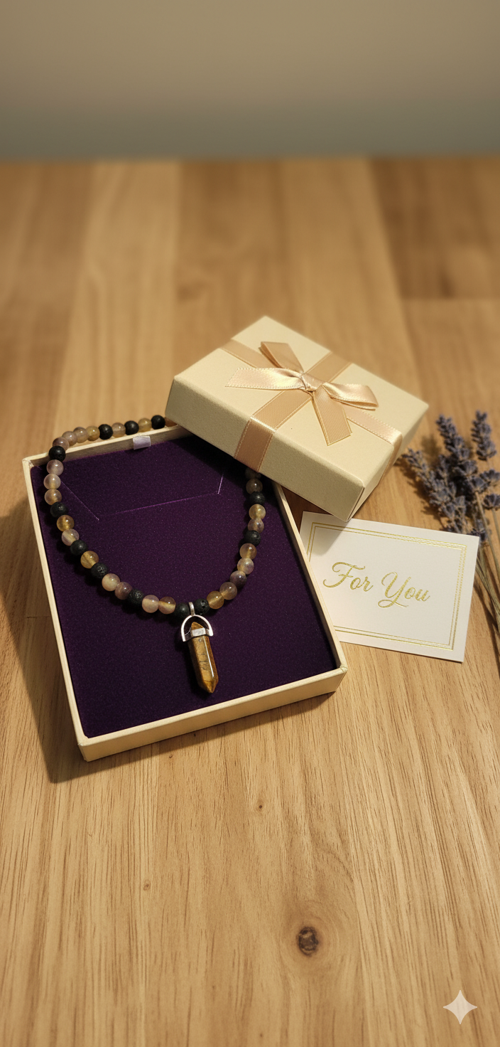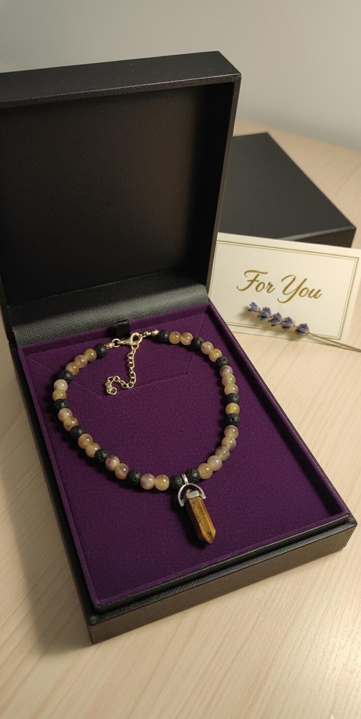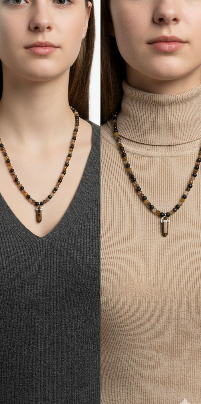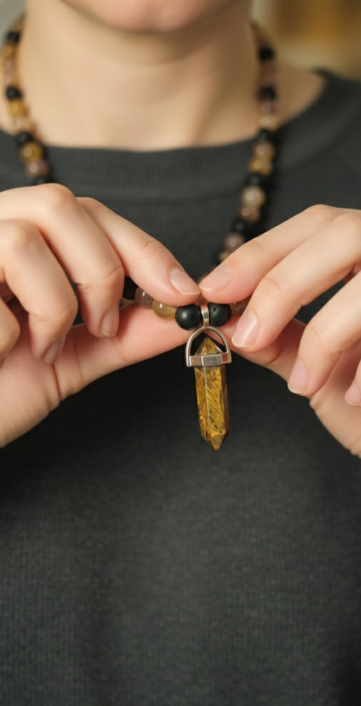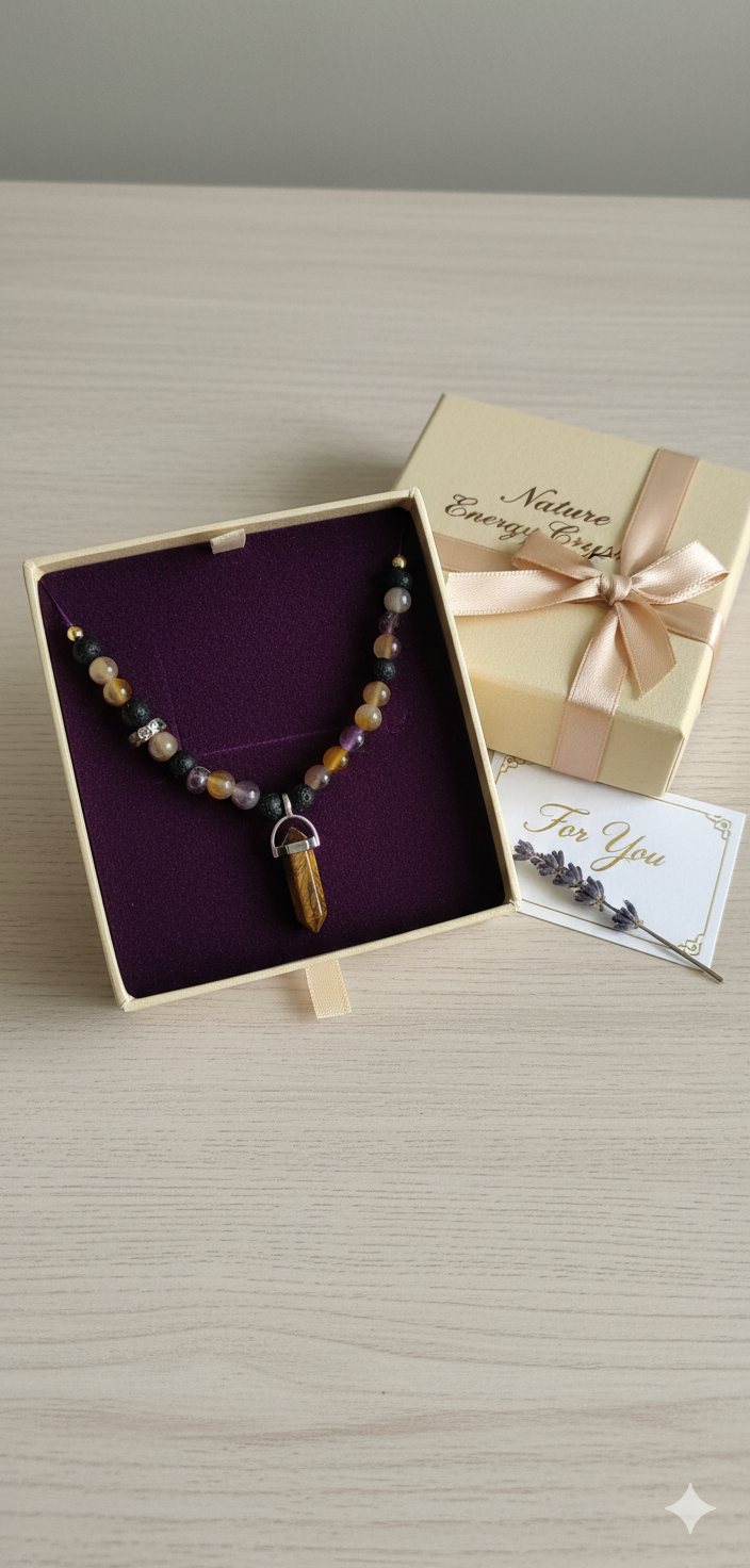 Tiger Eye & Agate: Courage and Protection Stone. Handmade Energy Necklace.